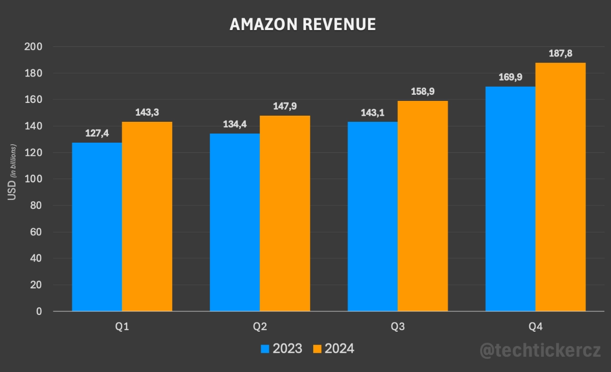 Amazon zveřejnil finanční výsledky za 4. čtvrtletí roku 2024, které překonaly očekávání analytiků. Technologický gigant dosáhl rekordních tržeb i zisku a pokračoval v inovacích napříč všemi segmenty svého podnikání.