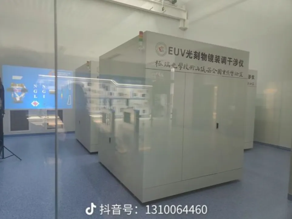 Překlad čínského textu na stroji zní: „EUV litografická objektivová sestava a vyrovnávací interferometr – Institut optiky, přesné mechaniky a fyziky v Čchang-čchun (Changchun Institute of Optics, Fine Mechanics and Physics). Přítomnost více interferometrů na fotografii naznačuje přípravu na sériovou výrobu.